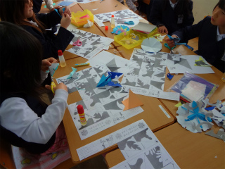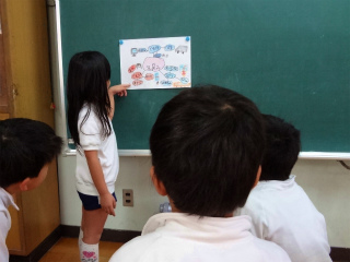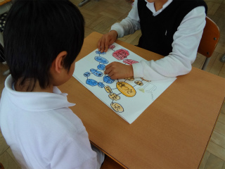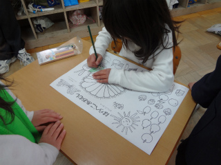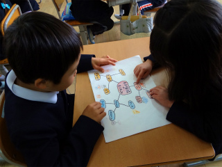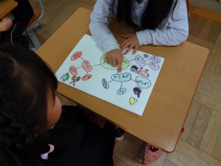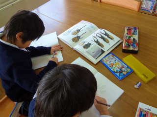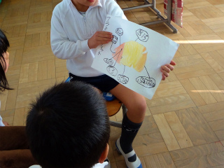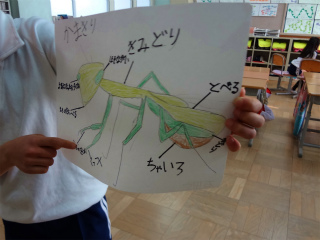 すきな動物や生き物の絵を描いた後、その体の様子を言葉で書き加えました。