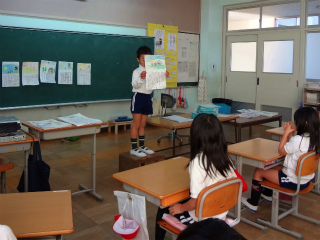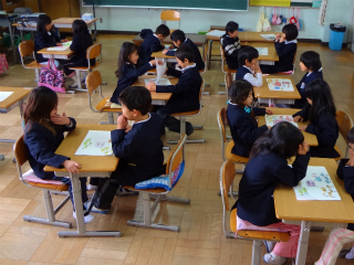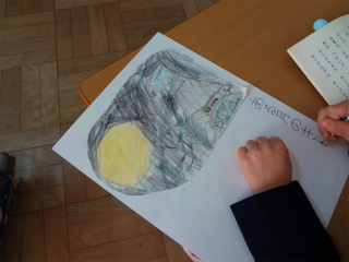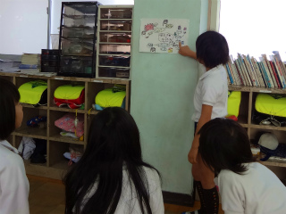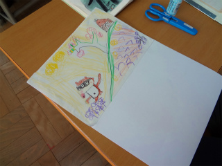 好きな場面の絵を描いて、文章を写す活動をしました。