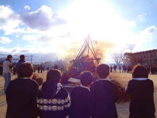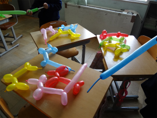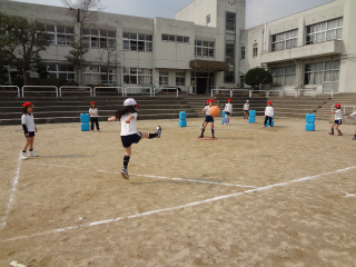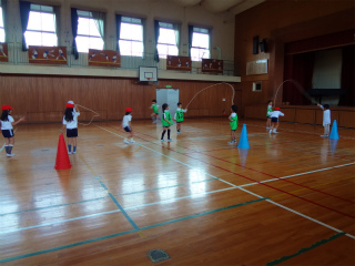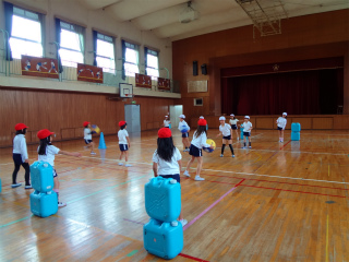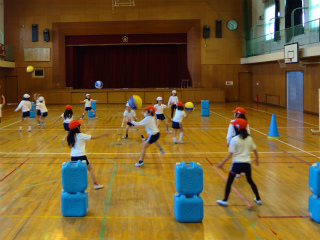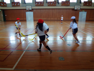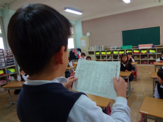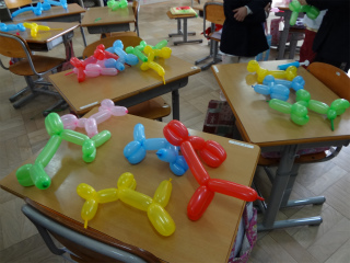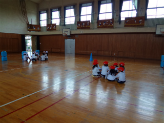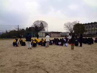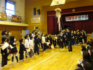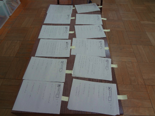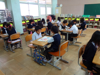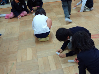 椅子と机を廊下に出して、みんなで床をきれいに拭きました。