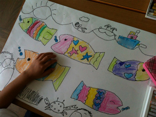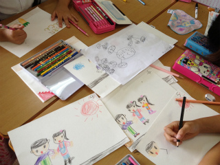 宿題プリントの○つけを自分で行ってもらっています。