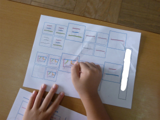 これができるようになってから、鉛筆を持って手本をなぞり書きします。