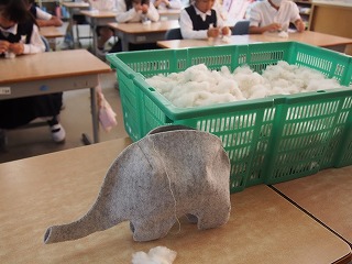おなかに わたを つめてもらったぞ。